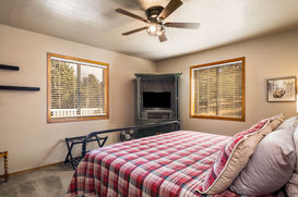 Come stay at Mountain Hideaway in Angel Fire, New Mexico — nestled among the pines and conveniently located just minutes from skiing, golf, and lake adventures. This inviting home offers the warmth of a true mountain lodge with all the modern amenities you need for a comfortable stay. Spread out across three levels, guests can enjoy multiple living spaces, a fully equipped kitchen, and expansive outdoor decks perfect for morning coffee or stargazing. Whether you’re cozying up by the fireplace in winter or soaking in the hot tub after a day of mountain biking, Mountain Hideaway is the perfect base for your mountain escape. --- HIGHLIGHTS YOU’LL LOVE • Just 2 miles to Angel Fire Resort for skiing and biking • 1 mile to the Country Club for golf, dining, and tennis • 2.5 miles to Monte Verde Lake for fishing and boating • Private, wooded setting with decks and outdoor living spaces • Sleeps up to 16 guests comfortably • Multiple living areas with fireplaces and Smart TVs • Game room with ping pong, Roku TV, and seating area • Fully stocked kitchen with modern appliances and dining for groups • Hot tub, outdoor fire pit, and gas grill • Laundry room with detergent and dryer sheets provided --- ABOUT MOUNTAIN SERENITY RENTALS Part of Mountain Serenity Rentals, this home is cared for by a family-owned team with over 20 years of experience. We manage just a handful of properties, allowing us to focus on comfort, cleanliness, and service — providing essentials like firewood, propane, detergent, and kitchen basics so you can simply relax and enjoy your stay. We pride ourselves on our attentive communication and quick response times, so if you need anything during your visit, don’t hesitate to reach out — we’re always happy to help. --- BEDROOMS & BATHROOMS The house sleeps up to 16 guests across three levels: • Primary Suite (Upper Level): King bed, private ensuite bath, fireplace, sitting area, and workspace. • Two King Rooms (Main Level): Each with king bed and shared full bathroom with shower. • Bunk/Game Room (Lower Level): Two full-over-full bunk beds plus a queen bed, with nearby full bath. • Bathrooms: Three full baths total, one on each floor, all with tiled showers and rainfall showerheads. Each room includes linens, blankets, towels, shampoo, body wash, and hair dryers. --- LIVING & ENTERTAINMENT Relax in multiple living spaces spread throughout the home. The main floor features a comfortable living room with plush seating, a wood-burning fireplace, and Smart TV. The upstairs loft offers a quiet retreat with another fireplace, while the lower level game room is perfect for families — complete with a ping pong table, Roku TV, and seating area for games and movies. --- KITCHEN & DINING The fully stocked kitchen includes stainless steel appliances, a gas stovetop, oven, microwave, and refrigerator. Enjoy both regular and Keurig coffee makers, plus cookware, bakeware, and pantry basics like olive oil and spices. Dining options include: • Main dining table seating 8–9 • Breakfast bar with stools for 4 • Bar table with seating for 4 in the living area • Outdoor dining table with seating for 6 on the deck A gas grill is also provided for outdoor meals year-round. --- OUTDOOR SPACES Step outside to a private wraparound deck surrounded by pine trees — ideal for morning coffee or evening drinks under the stars. Soak in the hot tub, gather around the outdoor fire pit, or watch wildlife pass through the woods. The spacious yard offers plenty of room for kids to play, from summer exploring to winter snowball fights. --- ENTRY, LAUNDRY & PARKING Smart lock entry makes check-in easy. A mudroom area provides hooks and mats for coats and boots. A laundry room with washer, dryer, and detergent is located on the lower level. Parking is available for multiple vehicles in the driveway, with additional space near the road in winter. The garage is available for entry but not for vehicle parking. --- EXTRA FEATURES • Hot tub and outdoor fire pit • Multiple wood-burning fireplaces • Game room with ping pong and Smart TV • Fully stocked with essentials for a hassle-free stay • Wi-Fi and Smart TVs throughout the home • Smart TVs in all bedrooms, the loft, and the main living room --- NEED MORE SPACE? Traveling with a large group or need a different setup? Explore the full collection of Mountain Serenity Rentals homes in Angel Fire to find the perfect fit for your stay.